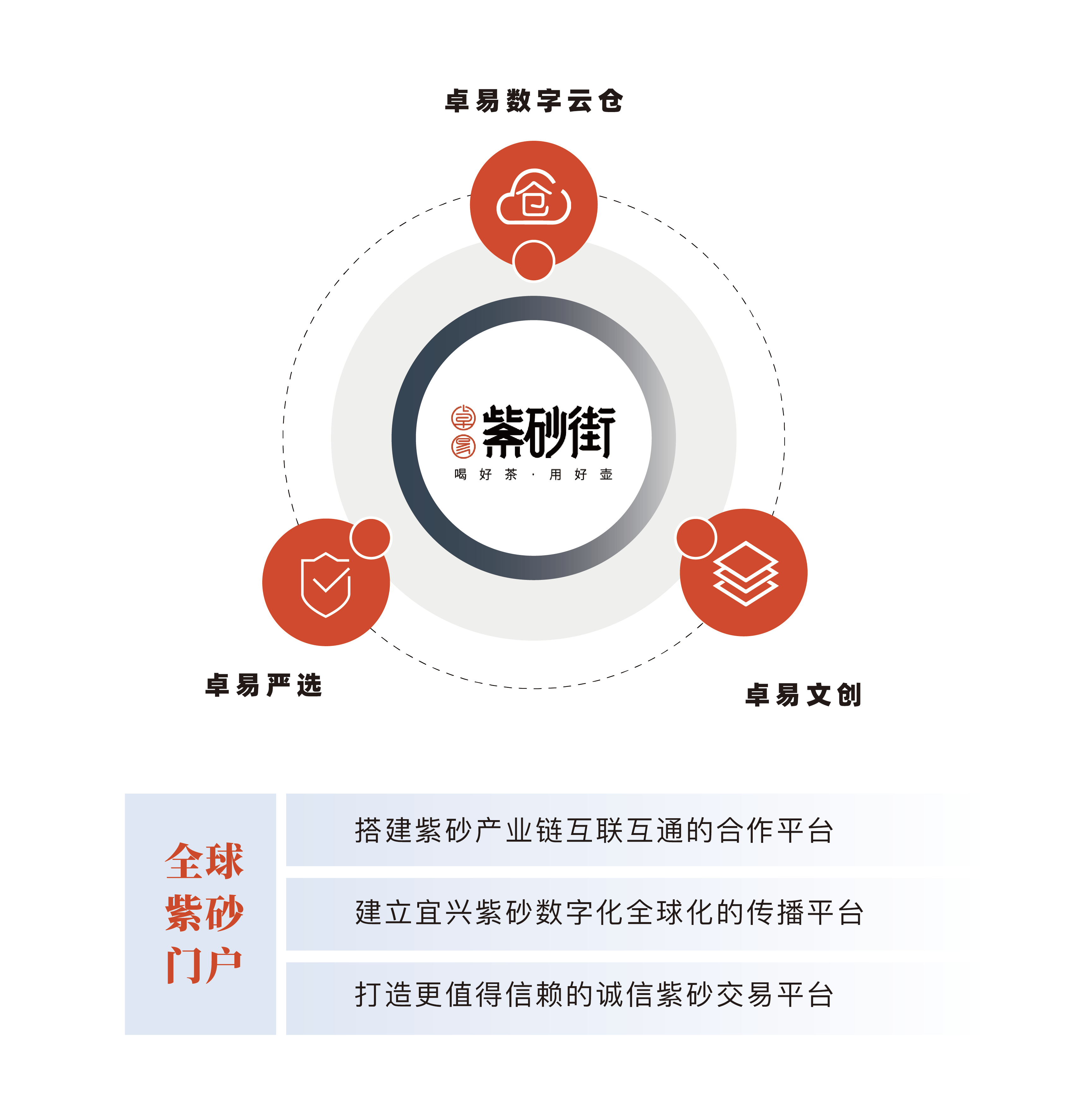 卓易文化秉承科技传播紫砂之美的理念,与江苏省文交所联合打造集紫砂艺术品实物+数据(版权)交易功能于一体的“紫砂·易”平台,积极探索新技术、新模式在紫砂产业中的应用,促进文化传承与创新。通过国际展览、文化交流论坛等方式,将紫砂·易平台打造成中国紫砂文化对外传播的重要窗口。
