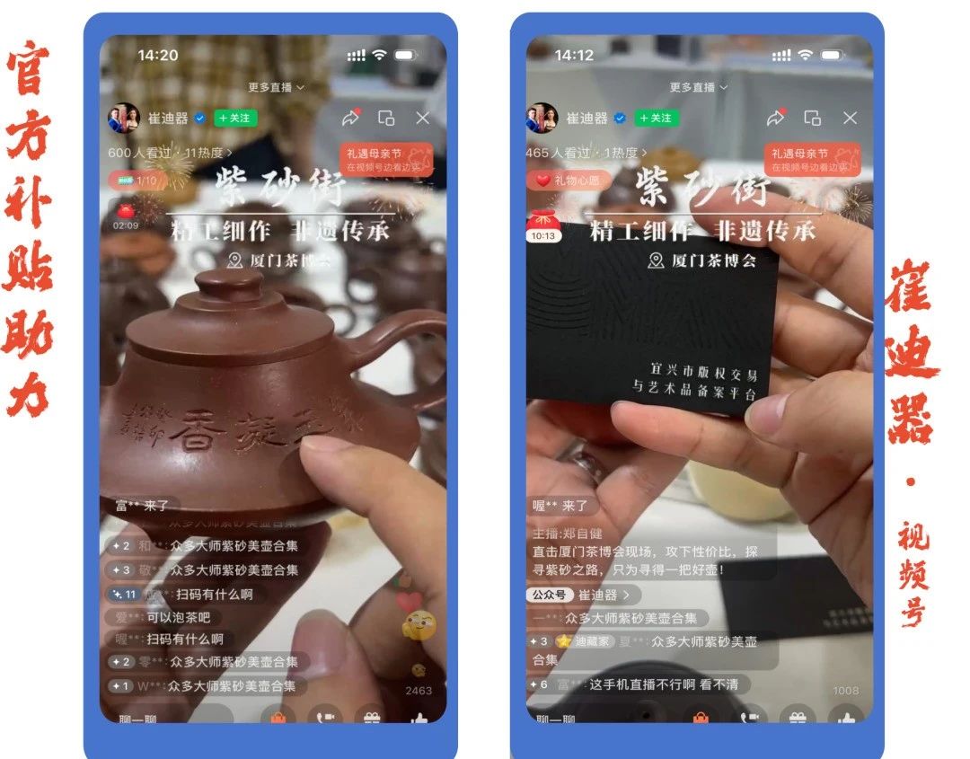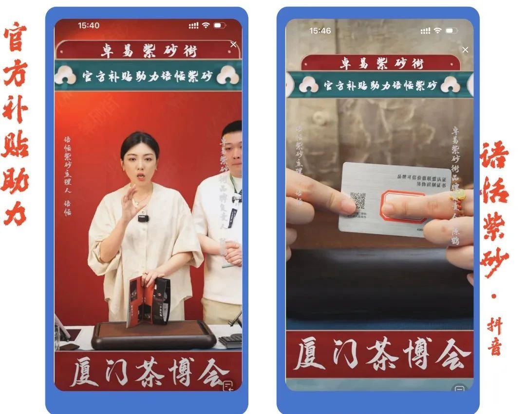 为了全面展现紫砂壶的非凡魅力,卓易文化将直播间搬到了展会现场,并推出“官方补贴”政策,为各大直播间提供鼎力支持。众多本地知名直播间和业界大咖们纷纷表示,能有机会担任“卓易紫砂街推介官”,弘扬中国传统文化,将真正优质的紫砂艺术品呈现给广大观众,深感荣幸与喜悦。此次直播活动不仅实现了线上线下的紧密联动,还横跨了微信视频号、抖音、淘宝等多个热门直播平台,将宜兴紫砂文化进行广泛传播,将真正好的产品带给大家。
